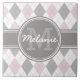 Tendência, padrão de estilo de pré-disquete em uma paleta cor-de-rosa, cinzas e branca. Este padrão clássico, na moda, apresenta uma placa de nome em círculo com modelos de nome e monograma fáceis de personalizar. Uma design geométrica moderna, chica, com um toque pessoal feminino.