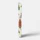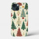 Capa de telefone em um retrô, padrão moderno do século Médio de árvores de Natal estilizadas, vermelhas e verdes, sobre fundo creme