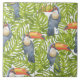 Este pássaro tucano colorido senta entre as folhas deste padrão temático da selva. O design é criado com um padrão sem costura de ilustrações de efeito pintado com aquarela.