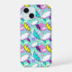 Veja esse padrão fofo com nuvens de neon, raio e folhas tropicais.