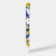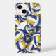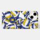 Esta capas de iphone temática de vôlei para raparigas apresenta volichões azuis, dourados e brancos de dimensões variadas, dispostos de forma aleatória sobre um fundo branco personalizável — os painéis azuis e dourados do volleyball são misturados com um padrão caleidoscópico floral para uma aparência esplêndida e artística que ainda é esportiva - personalize seu monograma - por katz_d_zynes