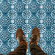 Design de azulejo de cerâmica Elegante com um padrão sem costura feito de formas geométricas em diferentes tons de azul.