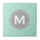 Um padrão-chave grego giro, bonito, moderno, geométrico, em verde-menta e branco, com um quadro de etiqueta circular de cinza para a letra inicial do monograma personalizado. Um impressão de padrão legal, feminino e elegante com um toque pessoal que fará uma tendência e um dom único para garotas/mulheres.