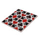 Conjunto de quatro ícones de traje de cartas vermelho, preto e branco, padrão perfeito e colorido. Estes azulejos de casino são perfeitos para quem gosta de jogos de cartas como pôquer, ponte ou blackjack. Um presente divertido para amigos, colegas de trabalho ou família no Natal ou Aniversários, e quaisquer ocasiões de doação!