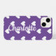 Este é um design personalizado bonito com um bonito padrão de corações. Esta design moderna tem um simples padrão de corações em branco, e está em tendências roxas com a tipografia retrô. Este design bonitinho é perfeito como presente personalizado ou novo acessório de telefone para você mesmo. para personalizar, basta adicionar seu nome usando a caixa de texto personalizar esta caixa de texto. Para personalizar, faça check-out da ferramenta de edição de design. Para obter ajuda com a personalização, produtos correspondentes ou para um design personalizado, entre em contato comigo via chat zazzle ou email: ursuladawnmoon@gmail.com