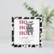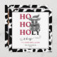 Cartões de Natal de Santa Vaca. Um cartão de cartões de natal engraçado, com tema de fazenda, com uma vaca fofa vestindo um chapéu de Papai Noel dizendo "ho vaca sagrada é Natal de novo" em um padrão preto e branco. Adicione sua própria foto festiva à parte de trás do cartão e envie cartões de natal alegres para sua família e amigos.