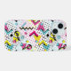 Veja este estilo divertido Memphis caracterizado por cores ousadas, formas geométricas e designs brancos.