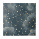 Azulejo cerâmico de padrão de constelação mística com estrelas douradas, linhas celestes e nuvens sonhadoras em um fundo de céu noturno escuro. Ideal para amantes de astrologia, observadores de estrelas, fãs de astronomia, buscadores espirituais e qualquer pessoa que ame o estilo cósmico e celestial.