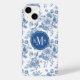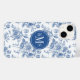 Veja este design com um padrão floral azul.