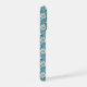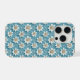 Um padrão contínuo apresentando flores branco-ivory com aglomerados de pérolas em um fundo azul vibrante. Ideal para moda, papel de parede e fundos de produtos, transmitindo elegância, luxo e charme refinado.