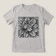 T-Shirt em uma imagem gigante e aproximada de uma peônia floresceu em preto e branco, acentuada com cinzas de grafite escura