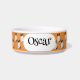 Este design adorável e excêntrico de gato é perfeito para mães, pais de gatos e amantes de animais! Com um padrão divertido de gatos de desenho animado preto e branco em um fundo laranja quente, é ideal para presentes e acessórios personalizados. Adicione o nome do seu animal de estimação para um toque único. Se você está comprando para si mesmo ou para um fã de felinos, esta tigela de estimação encantadora e única traz personalidade e diversão para a sua casa.