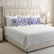 Ilustração de Folhas e Vines Roxos Boho em Padrão na Capa de Almofada. Transforme seu quarto em um oásis sereno com esta cama branca deslumbrante adornada com belas almofadas florais azuis e brancas.