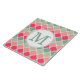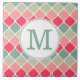 Para alterar a fonte, a cor, o tamanho e a posição da letra monogramada, clique no botão Personalizar!. Elegante, fofo e feminino, cor-de-rosa, branco e verde, design de padrão de latência de azulejo com uma etiqueta de estrutura em círculo na moda com uma tendência e numeração destacada no centro deste design personalizado onde você pode personalizar facilmente sua letra de monograma inicial. Este presente de padrão feminino legal está disponível em cores alternativas.