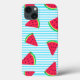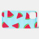Design divertido mostra suculentas fatias de melancia vermelha com sementes em um padrão de linhas azuis-claras listradas. Uma design que traz um sorriso e te lembra do verão. Delicioso, delicioso, design fresco. Para amantes de comidas, chefs, cozinheiros, padeiros, pessoas que amam o verão, têm senso de humor, ou um estilo moderno de chic.
