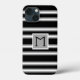 Este design apresenta um fundo preto com listras em cinza e branco. Personalize com um monograma inicial único. A composição é simples, elegante e sofisticada. Esperamos que você goste! Achamos que é um sucesso!