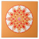 Azulejo de padrão mandala de doze pontos em tons de coral rosa, laranja, ouro mostarda e branco sobre fundo laranja coral