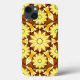 Padrão de mandala de doze pontos em tons de ouro amarelo e marrom quente, esboçado em preto e acentuado com branco