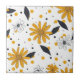 Um azulejo floral impressionante de cerâmica que apresenta flores amarelas e brancas, semelhantes à margarida, aliado a folhas escuras arrojadas para um contraste dramático. Os pontos amarelos e negros espalhados adicionam textura lúdica contra um fundo branco nítido. Perfeito para amantes da natureza, entusiastas da arte floral, e designs sazonais com uma reviravolta nova, mas elegante.