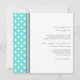Cartões de casamento em cinzas de carvão elegantes e contemporâneas, azul de turquesa aqua, verde de menta pastel claro, círculos retrorreflectores brancos e padrão geométrico de diamantes. Personalize esses convites com seus detalhes de casamento. Disponível em produtos correspondentes para todas as suas necessidades de casamento.