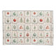 Arte de linha de aquarela, pequenos quadrados cheios de simples Natal rabugento, ornamentos e decorações, em cores clássicas de Natal. Elementos de animação em diferentes variantes, estacas e ornamentos de bolhas, mortes de Natal em cores suaves