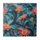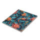 Um belo azulejo cerâmico com um padrão floral de papel sem soldadura contra fundo azul.