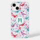 Bonito mão pintada de pássaro e design de flor selvagem em tons brilhantes de verde rosa, laranja, roxo e lacre. Perfeito para pássaros, ornitólogos, jardineiros e amantes da natureza. Altere o monograma para personalizar.