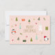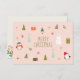 Cartão de natal divertido com símbolos das férias como árvores de natal, pinguins, presentes e sagrados.