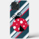 Linda joaninha contemporânea em cima de uma faixa diagonal patriótica vermelha, branca e azul. O design Whimsical, funky, hipster é feito para a motif artística ou artsy diva, moderna setter de tendências, moderno designer geométrico geométrico abstrato gráfico, animais, ou a natureza e o amante do jardim. Imagem única, clássica, moderna, bonito e decorativa em produtos de dispositivos decorativos e na moda eletrônicos. Clássico, chic e presente original para a menina.