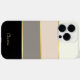 Cobrir seu telefone em um caso moderno com listras modernas em preto, cinza, rosa-pincelado e branco de casca-de-ovo cremosa. As linhas finas de ouro fino separam as cores no estilo do designer. Personalize com seu nome, monograma ou outro texto desejado. Você também pode excluir o nome de exemplo mostrado se preferir o caso sem texto.