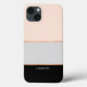 Personalizar facilmente esta capas de iphone de padrão listrado de blocos de cores modernos e minimalistas. Adicione seu nome, monograma ou iniciais. Possui design de cor elegante e na moda com listras douradas rosa femininas.
