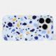 Padrão moderno de textura de pedra do terrazzo na capa de telefone de fundo azul. O presente perfeito para qualquer um!