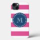 Um padrão simples, moderno, rosa quente e listras brancas com sua fonte inicial em uma fonte moderna, em uma etiqueta de círculo azul, náutico, marinho, faixa, moldura com uma borda de linha branca pontilhada. GraphicsByMimi© Trendy, na moda, mod, padrão de linhas ousadas que você pode com seu monograma para ela. Use o campo modelo para adicionar inicial ou letra do seu monograma ou selecione "it" para mais opções de edição, como adicionar seu nome, texto ou foto, para fazer seu próprio design personalizado, exclusivo, personalizado e de tipo único. Outras cores disponíveis.