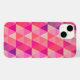 Padrão geométrico de tendências na capa de telefone. Nesta design, você pode ver cores como rosa, coral, magenta e roxo.