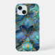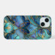 Capa de telefone elegante com um padrão de vidro corado azul e verde acentuado por linhas de ouro. Personalize com seu nome ou texto na parte inferior para obter um toque exclusivo.