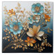 Padrão floral decorativo de aparência porcelana em ouro e turquesa macia.