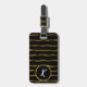 Apresenta um padrão de linha de brilho de ouro ondulado em um fundo preto. Personalize com uma inicial na frente, num círculo delimitado por folhas, e um nome e endereço na parte de trás.