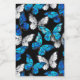 Borboletas realistas, azuis e brancas têm um padrão uniforme em fundo preto.