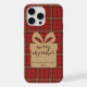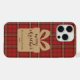 Dê ao seu telefone uma confortável reviravolta de Natal com esta capa de telefone vermelha de Natal com um padrão clássico de tartan e um sotaque festivo de arco. Perfeito para adicionar estilo sazonal e proteger seu dispositivo do visto cotidiano. Ideal para doação de inverno, acessórios de Natal e qualquer um que ama designs de férias tradicionais. Disponível para modelos populares de iPhone e Samsung e totalmente personalizável no Zazzle.