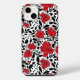 Padrão Floral bonito em Vermelho, Preto e Branco