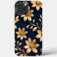 Capa de telefone Padrão Floral Azul Escuro e Dourado detalhado de forma elegante