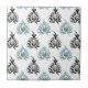 Para este padrão, usei um antigo motivo de rosa do século XVIII, a arte folclórica húngara. Cores frias como azul e marinho, azul claro e cinzas, são usadas, com um toque de contraste laranja em um layout geométrico elegante.
