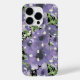Flores lindas e na moda púrpuras com verde em capas de telefone florais pretas. O Emporium da Jenn.