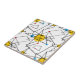 Ângulos e círculos lineares pretos nas cores primárias do vermelho, amarelo e azul constituem este padrão retrorreflector contemporâneo que lembra o Meio século moderno design de e a Era Atômica das décadas de 1950 e 1960.
