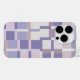 Um padrão abstrato com retângulos e quadrados em blocos coloridos de roxo e latte.