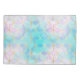 As formas geométricas do cubo são colocadas em camadas em um padrão e coloridas em tons alternados de azul pastel, rosa e roxo que lhe dão uma aparência de vidro iridescente. As formas são esboçadas em dourado falso.