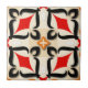 Design de azulejo de cerâmica elegante e moderna com formas geométricas em vermelho, preto, laranja, branco e bege.