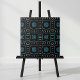 Padrão geométrico decorativo sem costura, com formas geométricas em branco e lacrimejo sobre fundo preto.