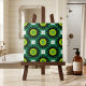 Design de azulejo de cerâmica moderna e elegante, com um padrão sem costura feito de formas geométricas em verde esmeralda, verde limão, preto e branco.