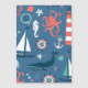 Este design de fachada apresenta um tema náutico com toneladas de vida marinha, farol, baleias, âncoras e amp; pavilhões náuticos sobre fundo azul escuro.